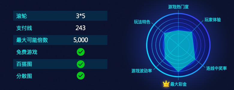 "五行拳"是一款243路类型的老虎机,243路的玩法是图标由左至右连续出现三个以上,就能获得中奖派彩。